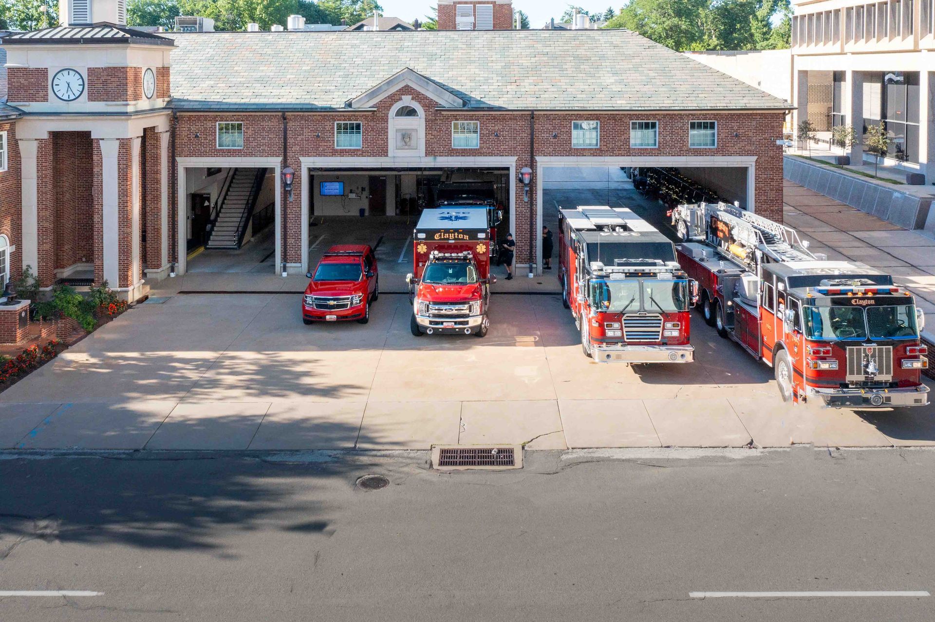 In 1917, the Board of Aldermen established the Clayton Fire Department as a professional full-time paid fire department. In 1924, the department moved into its new firehouse at 7755 Forsyth. This would be the home of the Clayton Fire Department for the next 80 years. In 2004, construction was completed on the current firehouse with five apparatus bays.